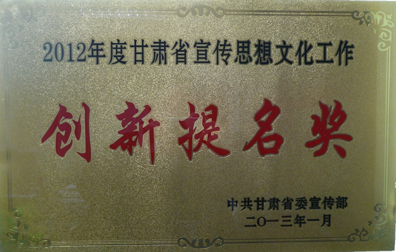 甘肅省宣傳思想文化工作創(chuàng)新提名獎